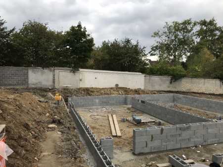 Chantier en cours de construction d'une maison individuelle sur mesure. La surface totale du terrain est de 407,00 m², il se situe sur la commune de TAVERNY (95150).